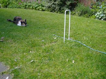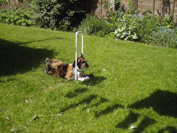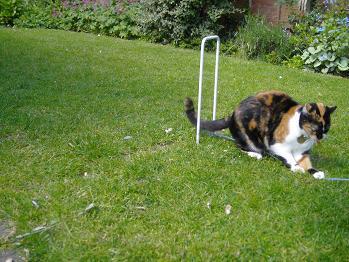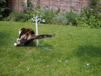 As you will know, the game of croquet involves getting a ball through a metal hoop. The aim in cat croquet is to get the cat through a hoop without handling it. If the cat goes round the hoop, it is one point to the cat, and if it goes through, it is one point to the player.
